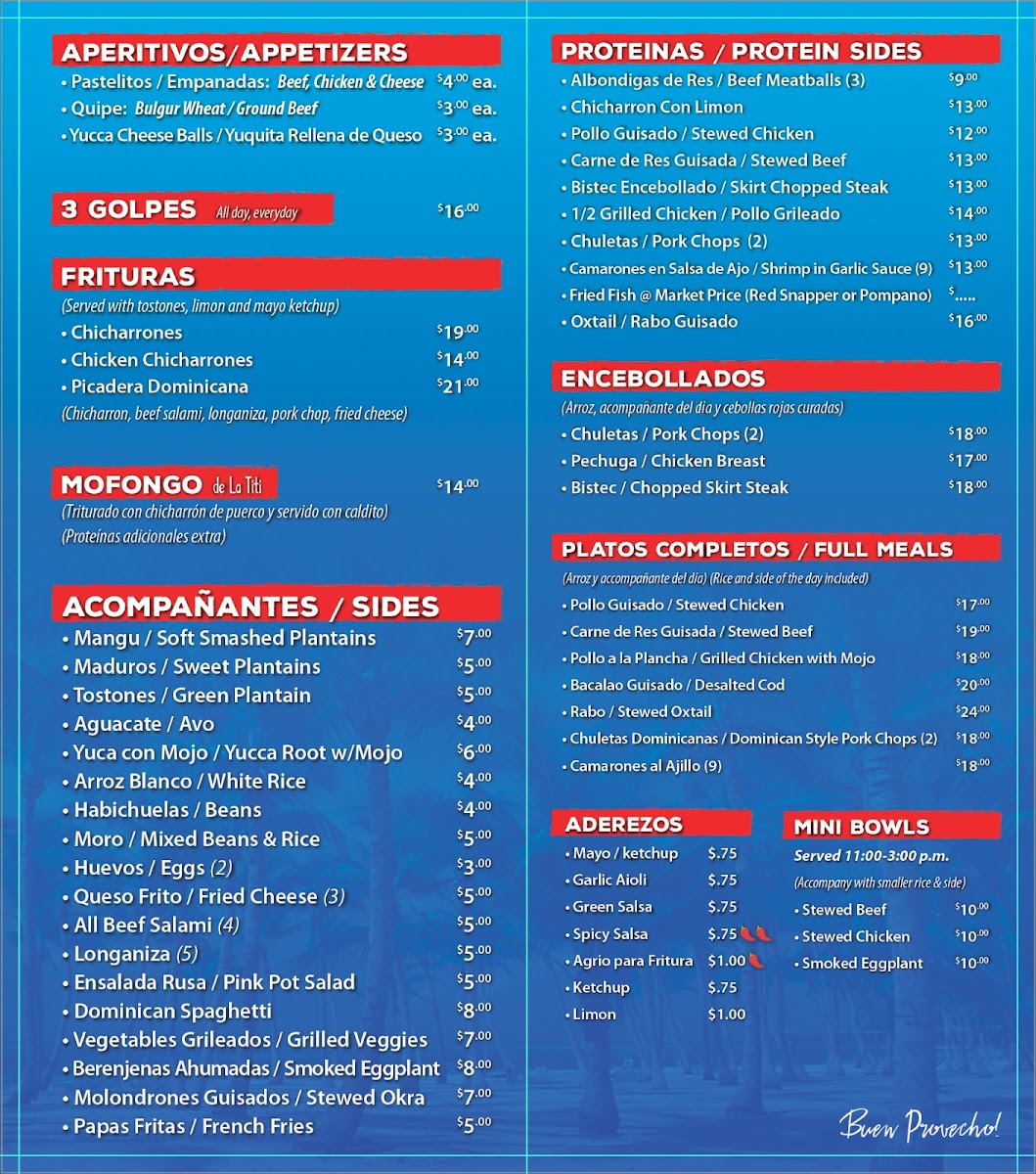 “ Before our trip to LA from Maui . we surch for domican food place. And found this one.. we drove one hour to this location.. and it was worth it.. seeing my wife enjoying her people's food was great .. the taste was the best . Does 3 Golpes was even better . Highly recommend.. we will come back again .. ”